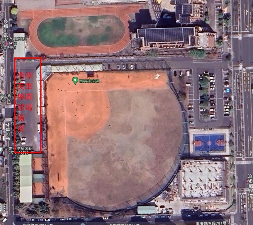 2.8/24 星期六新生始業式,本校南停車場因工程緣故,仍開放家長停放車輛。目前僅開放「文賢三街」旁的南英棒球場前廣場停車,停滿之後,請家長自尋校園周遭停車空位。(請由文賢三街進入南英棒球場前廣場停車,海安路路口不開放)