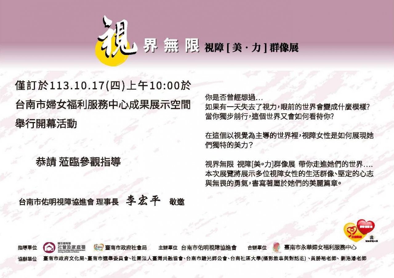 展覽地點:台南市安平區中華西路二段 315 號 7 樓(婦女福利服務中心展示空間)