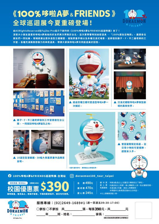 三、「100%哆啦 A 夢&FRIENDS 巡迴特展 台北站」基本資訊: