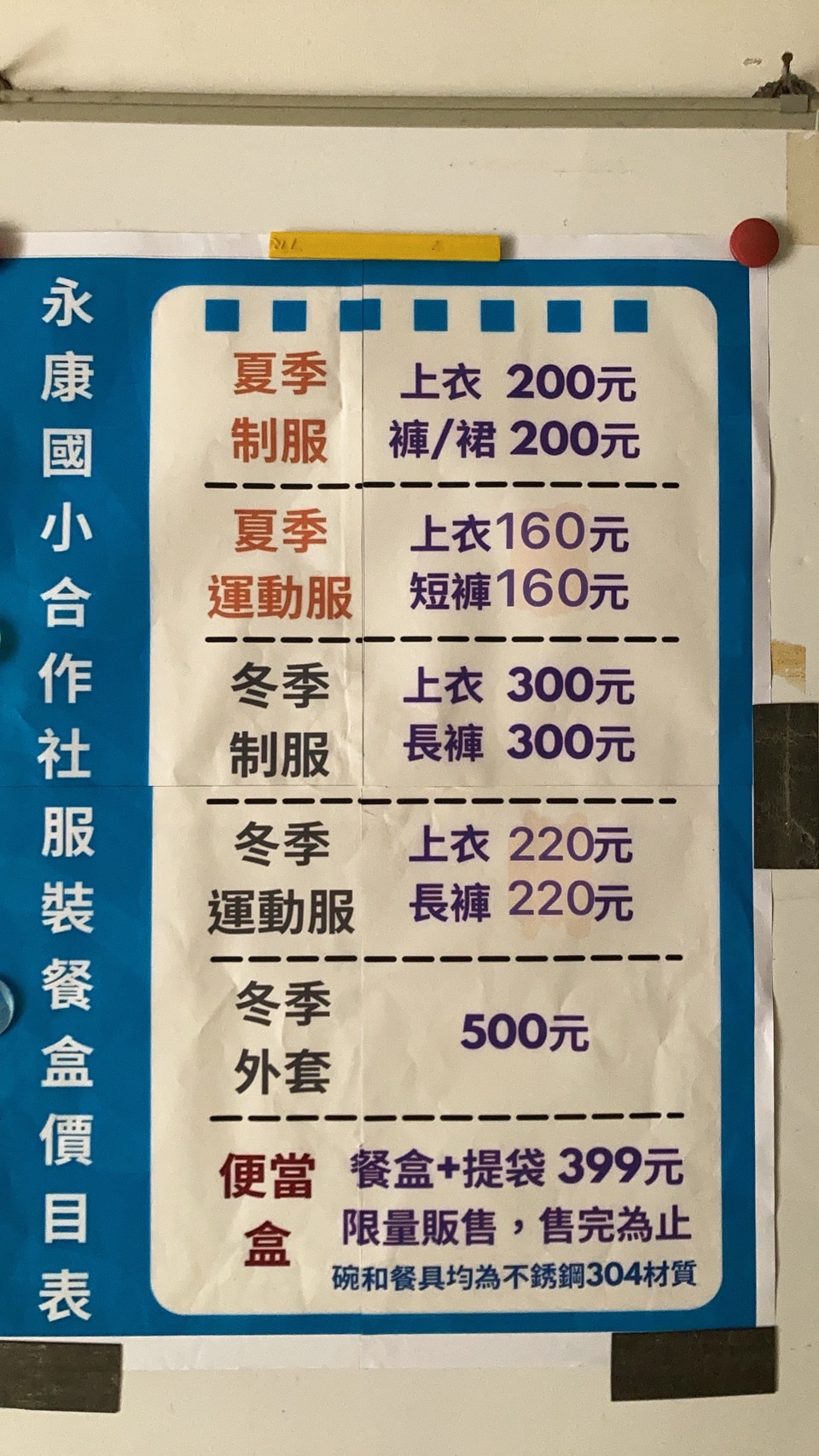 11/4 ,合作社開始販售 2-6 年級冬季制服與運動服。