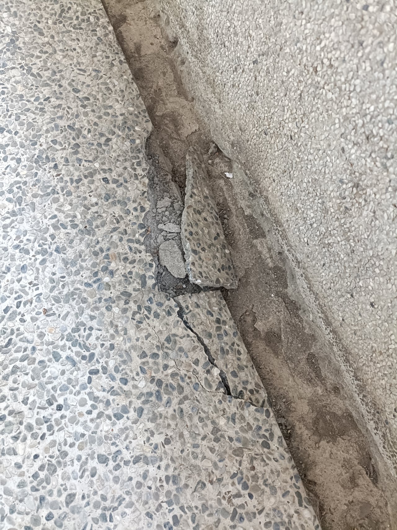詳細說明 學務處走廊有一小塊地磚塌陷