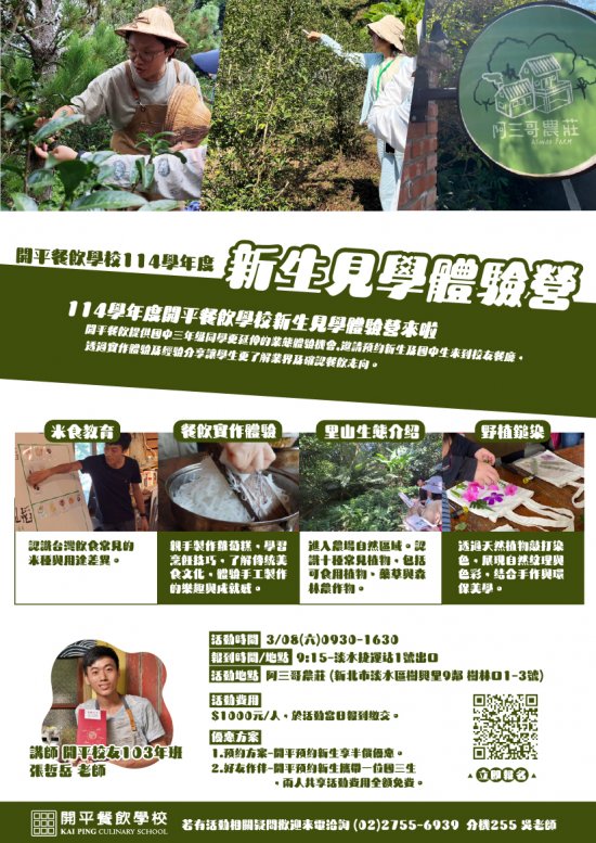 三、活動對象:全國國中生 36 位。(開平預約新生、國三生優先)