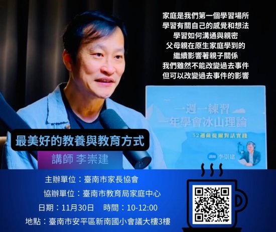 一、講座內容:邀請李崇建講師以薩提爾對話模式為核心,透過演講與實例分享,引導參加學員理解情緒背後的需要,並學習在互動中以尊重、好奇及接納,取代指責與衝突。