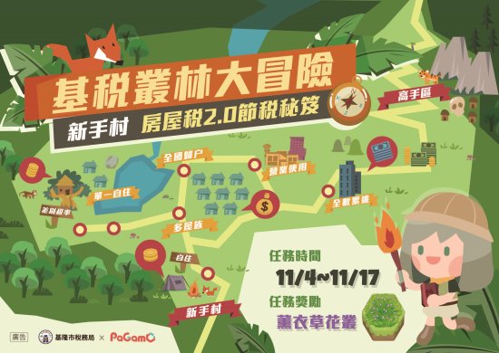 四、活動辦法:在活動期間內登入 PaGamO 線上學習平台,至任務書點選「世界任務」,選擇「基稅叢林大冒險」任務書,完成第一階段可獲得薰衣草花叢作為任務獎勵,以 Open ID 登入之基隆市公私立國小、國中生,前 150 名完成「基稅叢林大冒險」系列任務即可獲得超商商品卡 250 元。