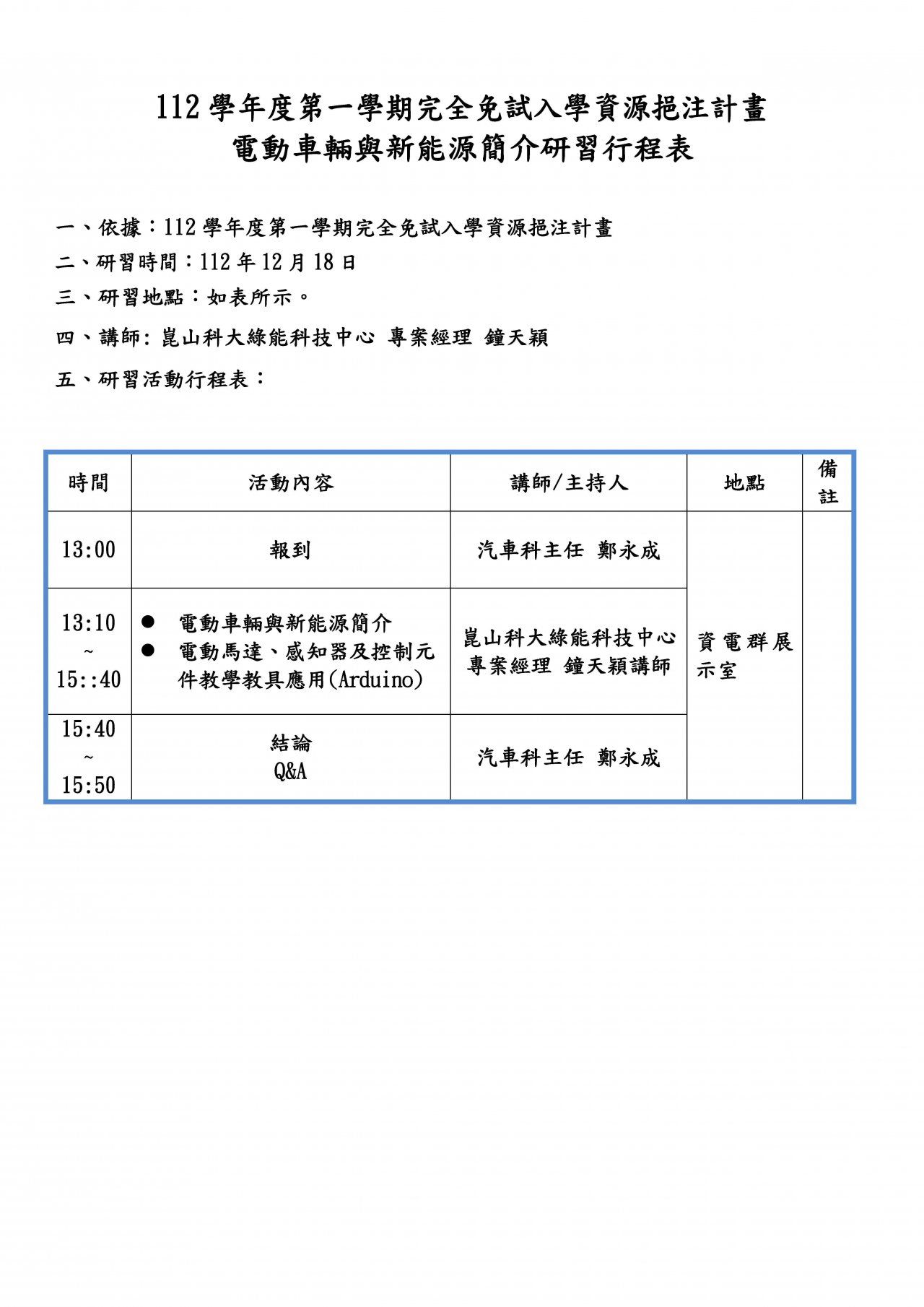 六、研習主題:「電動車輛與新能源簡介」研習。
