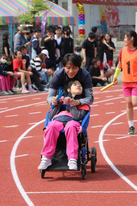 This year, Ping-Yi and Cheng-Hsun each represented their own class in the team relay. During the 100-meter relay, the cheering from the entire audience reached the peak of excitement, marking the highlight of the Sports Day. Students from both classes spontaneously invited Ping-Yi and Cheng-Hsun to join the relay team. “Infinite Love” went beyond winning or losing — the children wanted them to participate together in this class-wide teamwork activity!