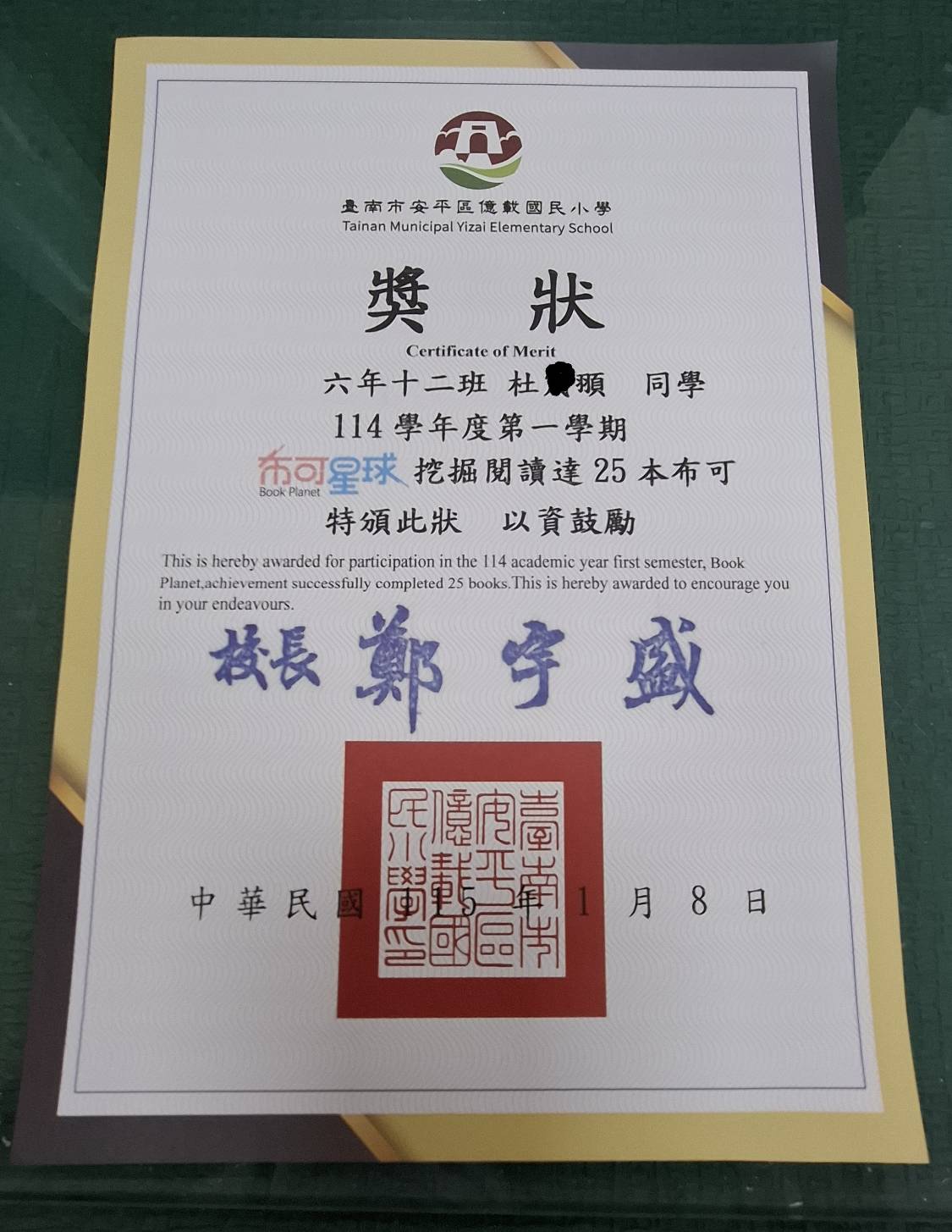 114學年度第一學期布可星球挖掘閱讀達25本布可