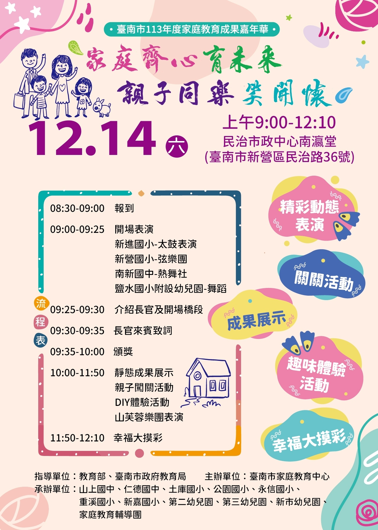 一、目的:為展現 113 年度本市家庭教育辦理成果,促進各校經驗交流,特辦理本嘉年華活動。