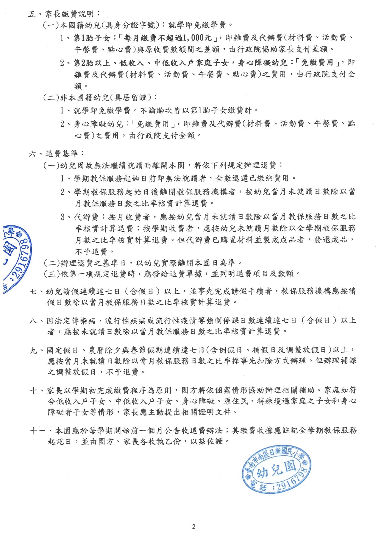 一、依據「臺南市教保服務機構收退費辦法」辦理。